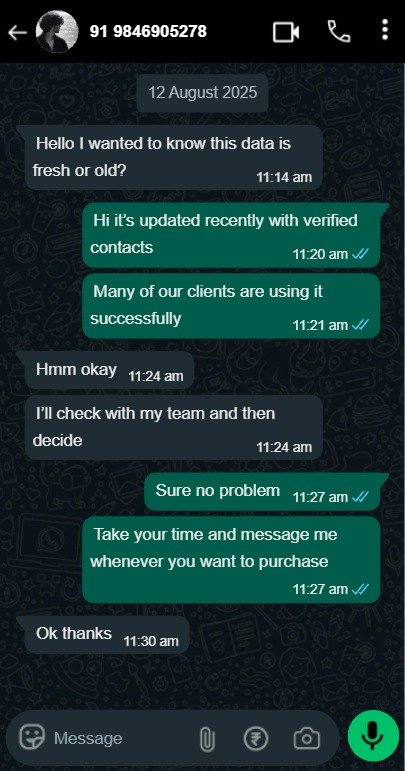I’ve been using the 100Cr+ India & USA Business Leads Database, and it’s honestly one of the best investments I’ve made for my business. 🙌 The data is clean, verified, and covers almost every industry you can think of. It’s helped me connect with real clients, close deals faster, and save a ton of time searching for leads. If you’re serious about growing your business, this database is a total game-changer!